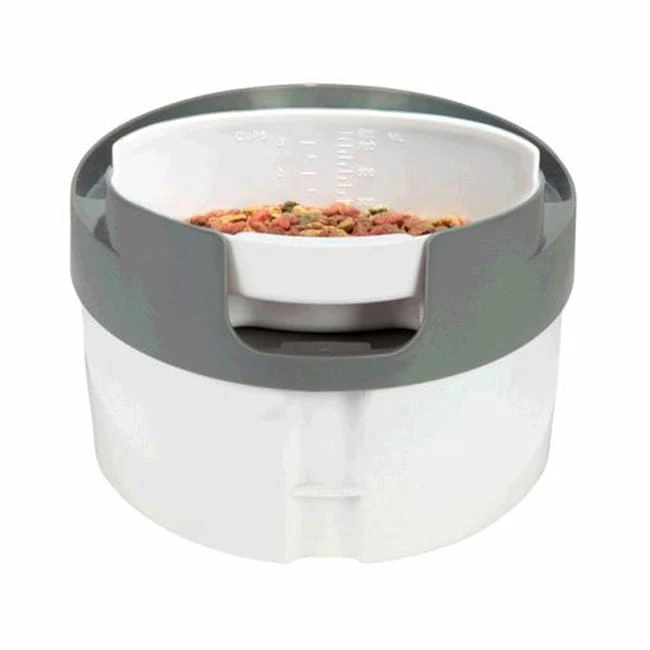 Super praktisch: Der aufgesetzte Futternapf, der auch als Dosierhilfe gute Dienste leistet. Die integrierte Skala macht die Verwendung von anderen Dosierhilfen überflüssig.