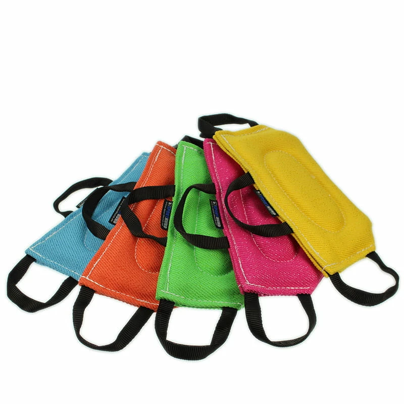 Das Beißkissen hat seitliche Gurtgriffe und bietet somit die Möglichkeit es optimal zu halten, um den Hund einbeißen zu lassen. Ebenso verfügt es über eine mittige Konterschlaufe. Dadurch, dass das Kissen sehr flach ist, eignet es sich optimal für die Vorausübung. Es liegt flach auf und ist somit für den Hund erst spät sichtbar. Auch macht die flache Form ein Verstecken unter der Kleidung oder in der Hundesportweste leicht möglich. Das Obermaterial des Beißkissens besteht aus Nylcot.