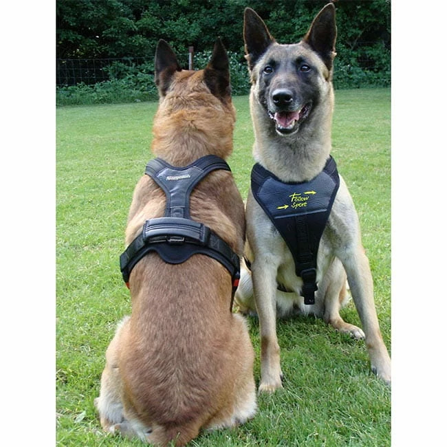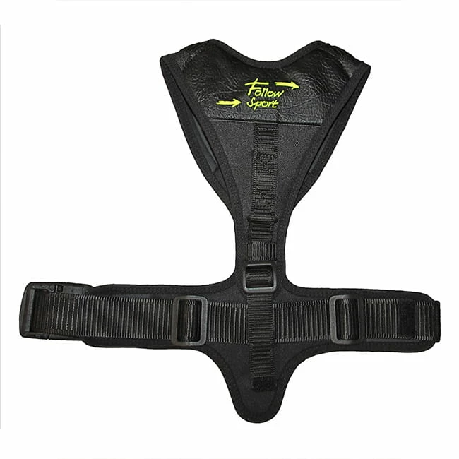 Es ist in der Grundkonzeption den Geschirren von Schlittenhunden ähnlich. Zusätzlich hat es einen großen Handgriff zum Halten des Hundes. Robuste und komfortable Materialien (Neopren, PTM und Gurtband) wurden bei der Herstellung verwendet. Das Hundeführergeschirr hat einen Rundring an der Oberseite zur Leinenaufnahme. Ein großer, robuster Steckverschluss am Bauchgurt sorgt für individuelle Einstellmöglichkeiten. Das Hundeführergeschirr Follow wird höchsten Ansprüchen gerecht, ist federleicht, pflegeleicht und nimmt kein Wasser auf.