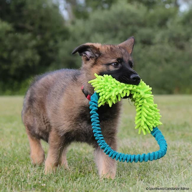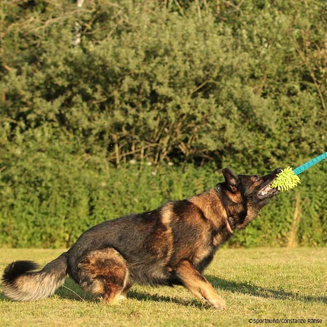 Der Mopp nimmt den Speichel des Hundes auf, sodass das Material im Gegensatz zu z.B. Leder auch nach längerem Spielen nicht glitschig wird und der Hund nicht abrutscht.