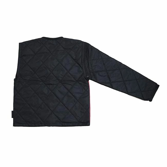 Die Jacke ist seitlich mit einem roten Streifen abgesetzt.