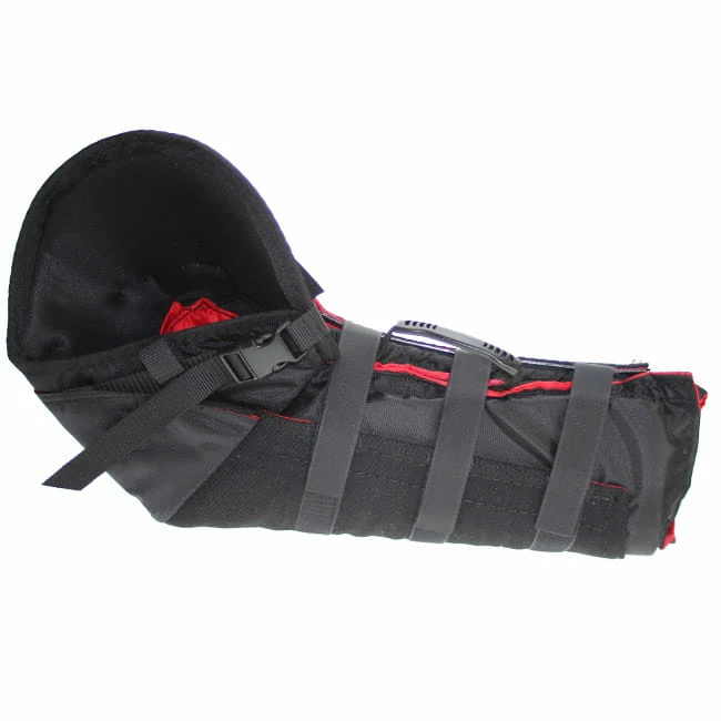 Hetzarm in kurzer und kompakter Bauform, in der harten Ausführung. Besonders leicht und mit gut geformter, keilförmiger Anbissfläche. Die Manschette ist austauschbar. Der Helfer kann sich durch die Bauform sehr gut und schnell bewegen. Der Hund lernt durch die schmale Anbissfläche den mittigen Griff. Ideale Fortsetzung des Knut Fuchs Hetzsets.
